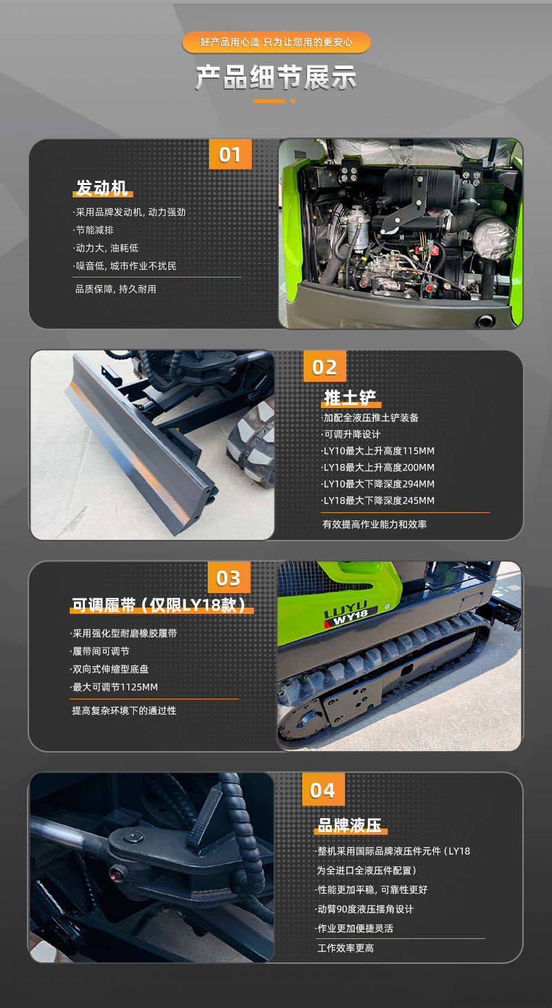 魯宇重工WY系列挖掘機(jī)兼具重型設(shè)備的挖掘力,與輕型設(shè)備的精密度;適合管線的挖掘,邊坡的休整,以及農(nóng)林等行業(yè)的小型施工;在任何場所均具出色的工作效率及性能。